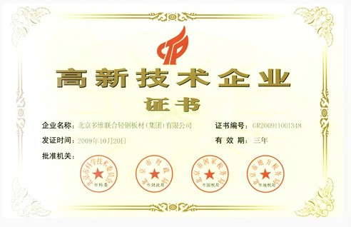 多维钢构:新型建筑板材荣获科技部《国家重点新产品证书》