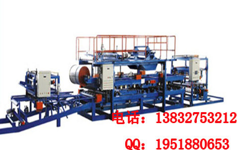 .升降架在40-320毫米范围内可调,有标尺指示.2.采用高精度低速计量泵送胶,变频调速控制,数字仿真量显示。出胶量在0.1kg每分钟内连续无级可调,采用滴胶上胶方式.3进料→放卷→封板成型→整形→压槽→滴胶→加热→卷边→插口→成型→开槽→长度设定输出4.上切割刀相对下切割刀在±200mm范围内可调,有标尺指示.5.生产线主要工艺流程:复合板机生产线速度为0-4.5m/s连续无级可调,变频调速,数... |