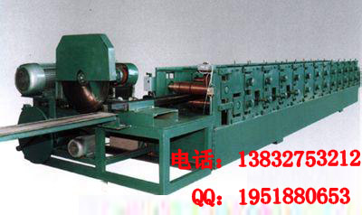 C型钢机、PLC电脑控制箱、专用液压泵站、全自动切割冲孔系统、带钢卷芯支架、后成型接料架1、外形尺寸:9500mmX1400mmX1000mm 2、电控系统:采用工业电脑PLC变频控制 3、主机功率:11kw 飞锯切割功率:7.5kw4、生产速度:0-7m/min 5、适用板材厚度:2.0-3.5mm 6、用途:檩条7、板材展开宽度:根据板材型号而定