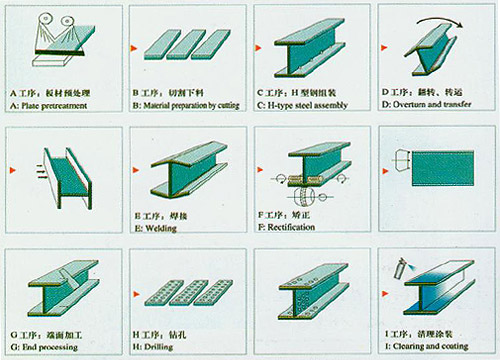 H型钢制作工艺流程 钢结构强度高、空间大、自重小、造价低、工期短、能重复使用,可根据用户和设计要求,制作各种造型、结构、功能和色彩的工业、民用和公共设施建筑物,是当代最先进、时尚、经济、安全的理想结构。